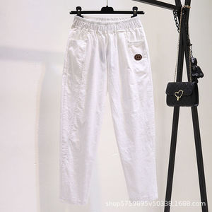 女性のためのカジュアルパンツ 2025 春と秋の新しいワイドレッグルーズホワイト薄いストレートハイウエスト純綿 9 点ハーレムパンツ夏