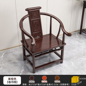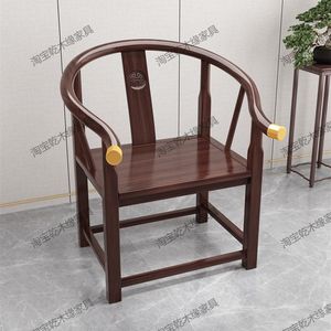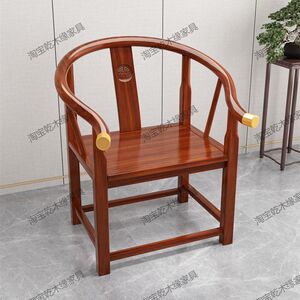 新中式实木椅子南榆木围椅牛角椅圈椅三件套卷书椅扶手官帽椅餐椅