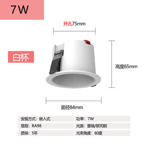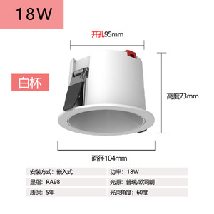 ダウンライト防グレア全普75センチ穴中性光深杯ledランプ中山灯具客間無主灯ダウンライト