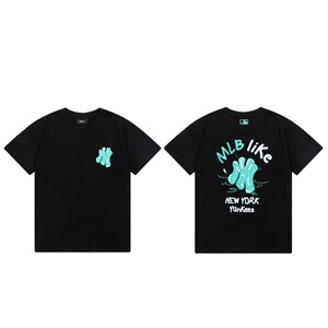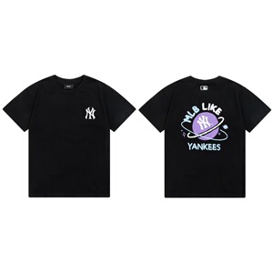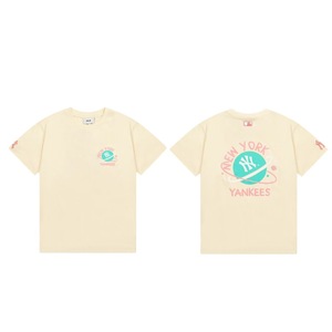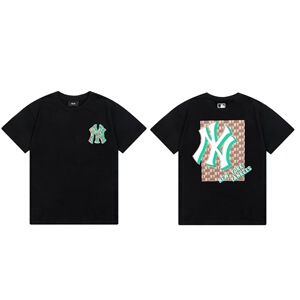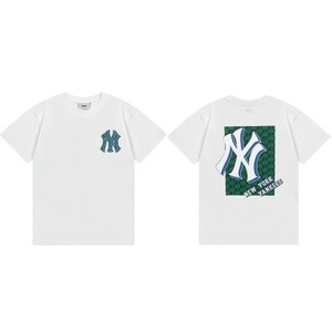 クロスボーダーMLB新ロゴ刺繍ファッション半袖フルプリントルーズTシャツ男性と女性用、ドロップシッピング