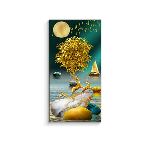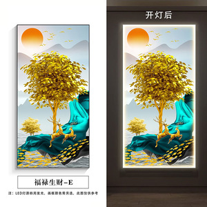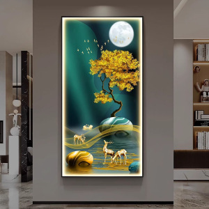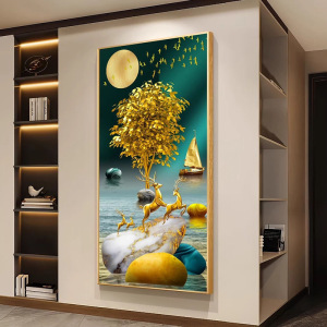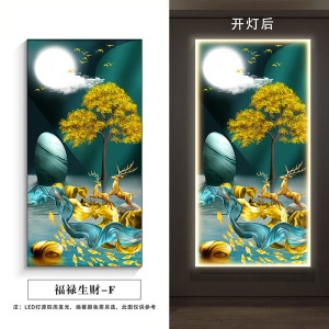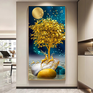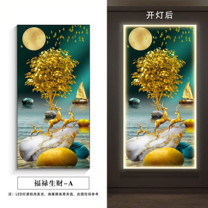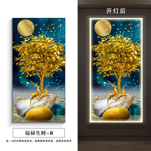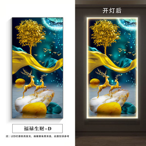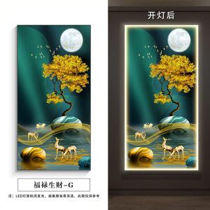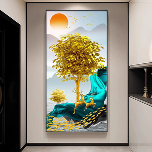 福鹿入户玄关装饰画灯画轻奢走廊过道壁画现代简约客厅风景画挂画