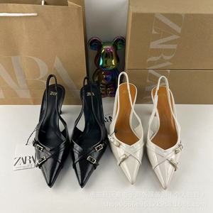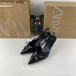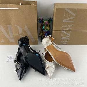 ZAR 春の新作 TRF 婦人靴黒白クロスベルトバックル装飾ハイヒール浅い通勤サンダル