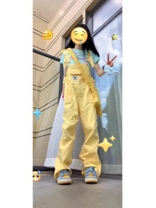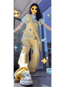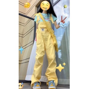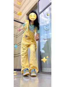 美式工装牛仔背带裤女秋季新款多巴胺穿搭复古宽松显瘦直筒连体裤