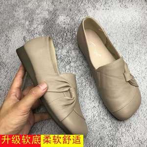 35-43 大码女鞋41真软皮单鞋春夏软底防滑平底中老年妈妈鞋42