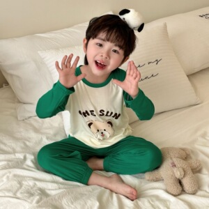 子供のモーダルエアコン服男女子供の夏の家庭服セット赤ちゃんの長袖のズボンの薄いタイプのパジャマ