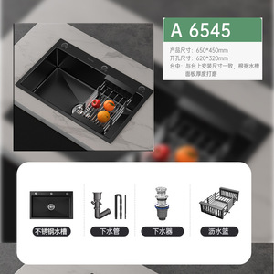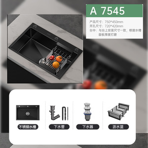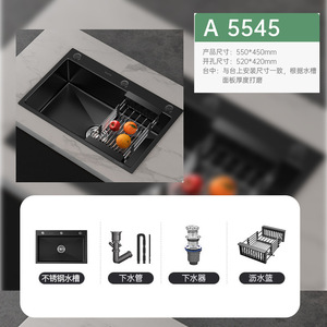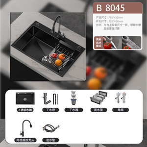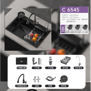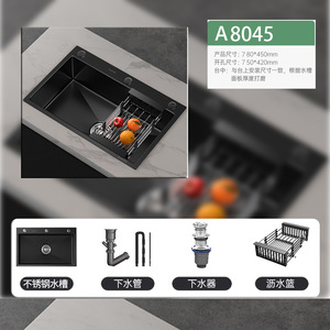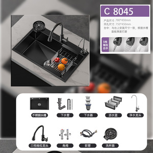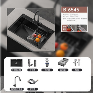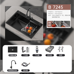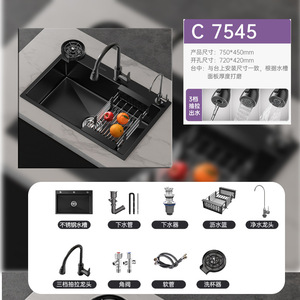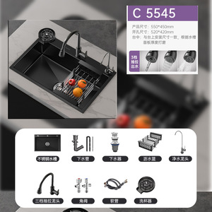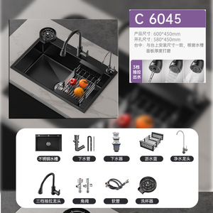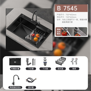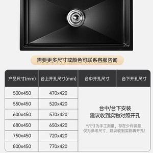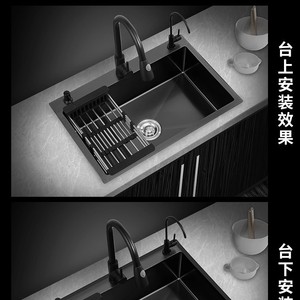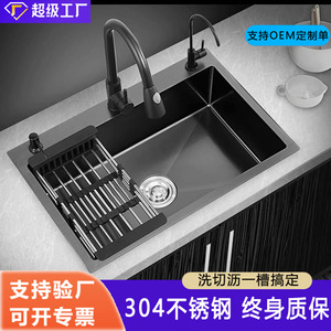 黑纳米不锈钢水槽不沾油厨房用大单槽洗菜池洗菜盆一整套抽拉龙头
