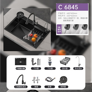 (【3MM加厚】黑6845基础套餐︱三挡抽拉+净水+洗杯器)