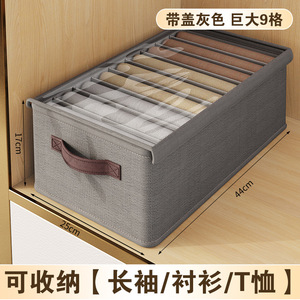 ~カバー付き・カーキ【1列・巨大9マス】奥行き44×幅25×高さ17cm【長袖/シャツ/Tシャツ収納】~