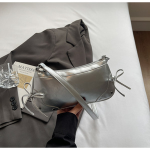 2025 新ソリッドカラー脇の下バッグトレンディなショルダーバッグダブルリボン小さな正方形バッグハンドバッグシンプルなファッション女性のバッグ
