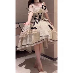 黑杏前短后长lolita连衣裙氛围感优雅气质重工生日成人礼公主裙