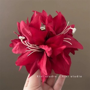 雰囲気のある赤い花のヘアピン