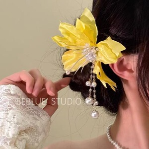 イエローフラワーパールタッセルヘアピン-1個