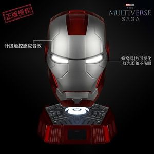 [トップギフトボックスバージョン] プラチナアイアンマンヘルメット - ライトアップ可能 - フードを開くことができます + アイアンマンアームが光ります + ダブルライトセーバー