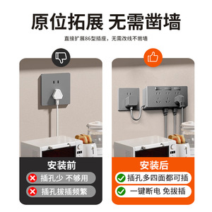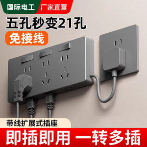 インターナショナルエレクトリックウォールタイプ86拡張ソケット多穴家庭用表面実装拡張コンバータ、コードストリップ付き