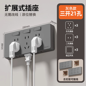【左拡張・グレーモデル】3開口21穴(穴あけ不要、電源コード付属)