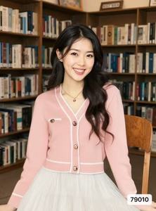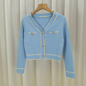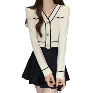 薄い香りの小さいvネックのニットの女性の秋冬の新型の洋風のファッションの短いセーターのカーディガンはやせている長袖を現します。