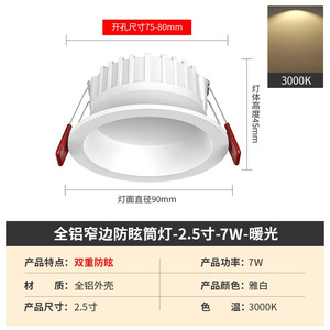 ホワイト-7W-3000K 暖かい光(開口部7.5-8cm)