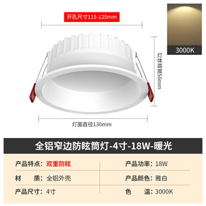 ホワイト-18W-3000K 暖かい光(開口部11.5-12.5cm)