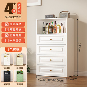 钢制斗柜奶油风卧室床头柜简约收纳柜靠墙式落地储物柜家用抽屉柜