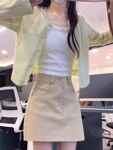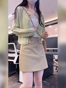 多巴胺绿色镂空针织开衫防晒罩衫女2025新款早春季小众设计感上衣
