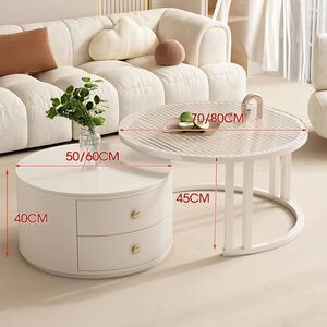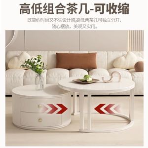 クリームスタイルのスレートコーヒーテーブル、小さなリビングルーム、家庭用人気のティーテーブル、モダンで軽い高級ラウンドコーヒーテーブルテーブルの組み合わせ