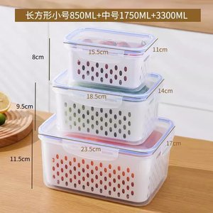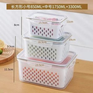 二層排水バスケットクリッパーキッチン電子レンジ冷凍庫密封ボックスプラスチック弁当箱冷蔵庫フルーツ収納ボックス