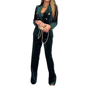 2024新型秋冬欧米国境を越えた独立駅の女性の起爆ファッション双列ボタンビロードのスーツ2点セット