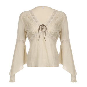 恋布忘れ古着荒原民族風格子縞vネック帯ラッパ長袖上着名媛百合ニット