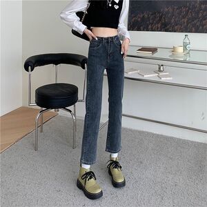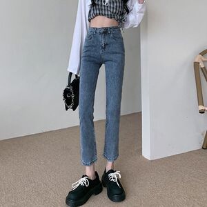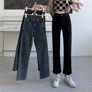 牛仔裤女直筒高腰春秋新款大码宽松显瘦百搭梨型身材烟管裤子