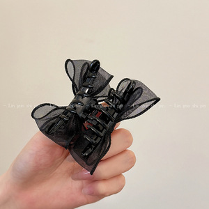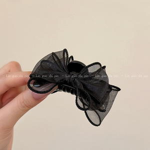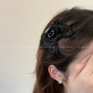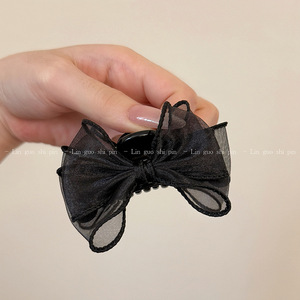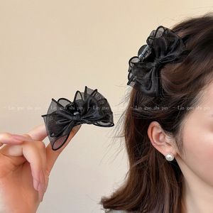 逃亡中のプリンセスメッシュリボンクリップハイエンド前髪サイドクリップファッショナブルな黒の気質小さなヘアクリップ女性用