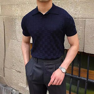 ヨーロッパとアメリカのメンズラペルシャツ半袖ルーズカジュアル薄手無地ニットポロシャツボトリングシャツトップ