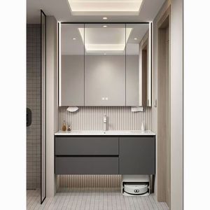 1米岩板无缝盆+下层抽屉柜+智能镜柜