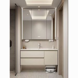 0.8米岩板无缝盆+下层抽屉柜+智能镜柜