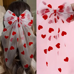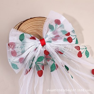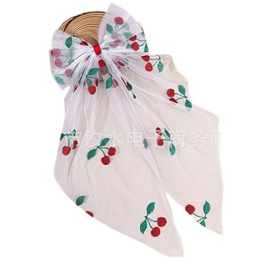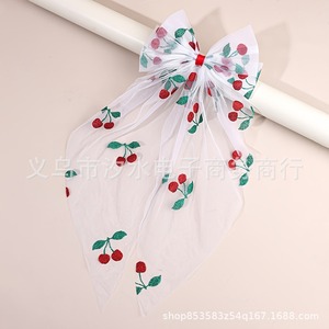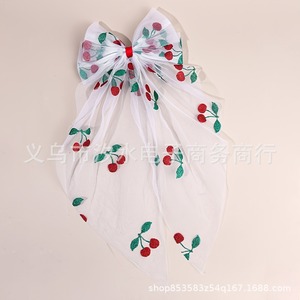 クロスボーダーの人気ネットのガーゼの布芸のさくらんぼの愛の蝶結びの髪のクリップの後頭部の長いリボンのかわいい髪飾りの女性のクリップ