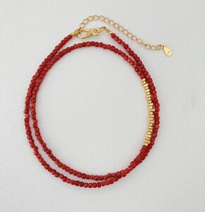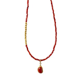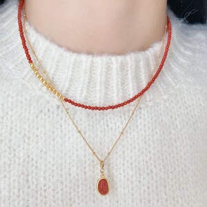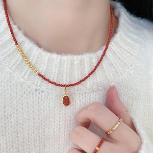 南紅ブロークンシルバーモデル+ゴールデンビーズチェーン小豆ペンダントセット
