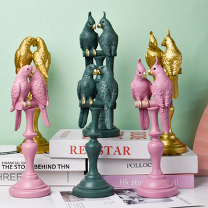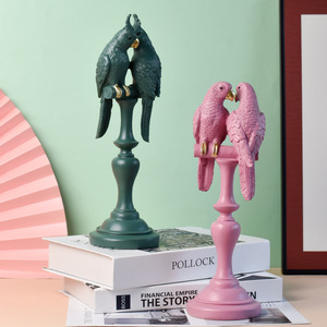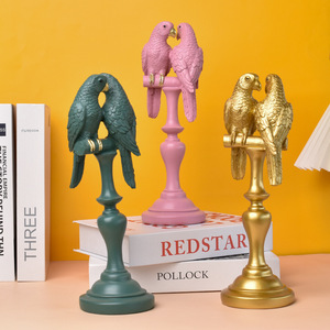 跨境新款情侣鹦鹉树脂工艺品动物雕像家居摆件桌面客厅酒柜装饰品