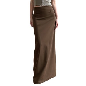 純粋な欲望スタイルのレトロなブラウンホットガールスリットヒップスカートローウエストワンピーススリムフィットニットロングスカート