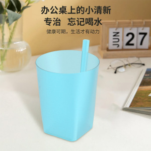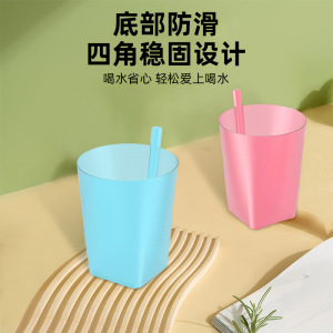 子供用プラスチック製ストローカップ、蓋なし、オールインワンジュースカップ、ベビー幼稚園ドリンクカップ