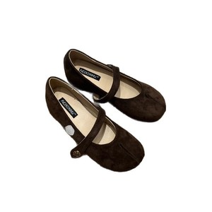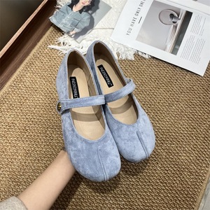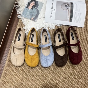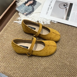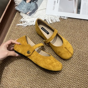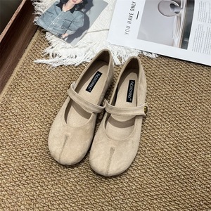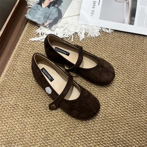 レトロメリージェーンシューズ 2025 フレンチスタイルエレガントスエードラウンドトゥ浅い口ソリッドカラーインナー高さバレエシューズ
