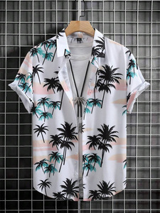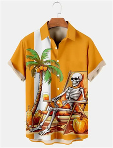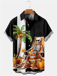 メーカー直販、海外向けシンプルカラープリントシリーズ2、カジュアルでゆったりとしたメンズシャツ