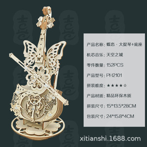天使の翼チェロのオルゴールの木のパズルの積み木の組み合わせの模型のおもちゃの手作りの女子学生のプレゼント
