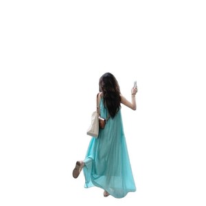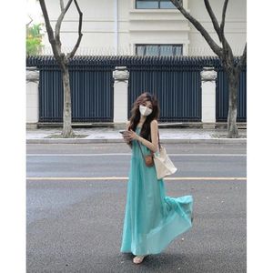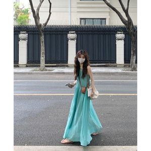 法式镂空吊带连衣裙女夏季海边度假风沙滩裙褶皱慵懒松弛感长裙子