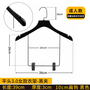 【ブラックスーツ】38フラットヘッド婦人服ハンガー-黒クリップ