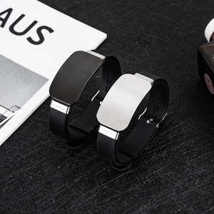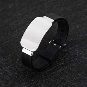 イン新しいファッション調節可能なシリコーンスポーツブレスレットカップルの誕生日ギフト加工彫刻ステンレス鋼ブレスレット