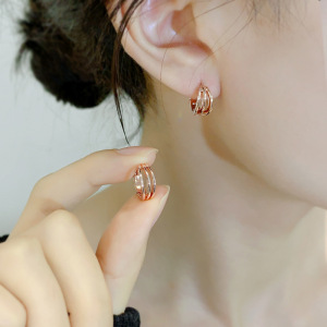 3 列のイヤリング (ローズゴールド)、本物の金メッキ、色を保ち、環境に優しい