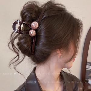 優雅な雰囲気に合わせて、ビーズを挟んで、女性の高級感2025新型の後頭部の髪を挟んで、サメの髪を挟んで飾ります。