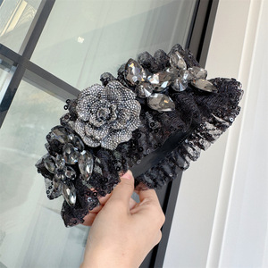 B041スパンコールネットのしわ水晶のカチューシャの葉の縁にダイヤモンドのバラの髪飾りの滑り止めの高い頭のトップのカチューシャの女性を入れます。