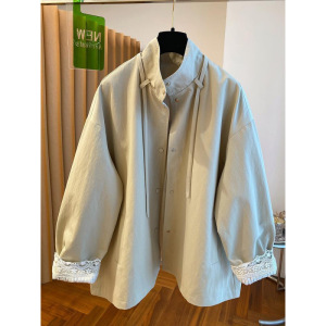 女性用の高級カフスレースウインドブレーカー、春と秋の気質、リボンシングルブレストルーズスタンドカラージャケットトップ、女性用
