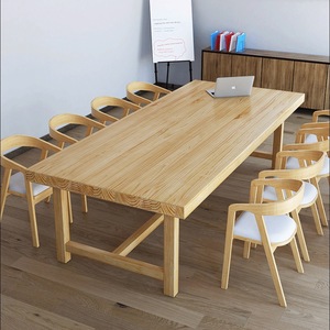 モダンでシンプルなログストリップ会議テーブルオフィス全無垢材ライト高級交渉テーブルと椅子スタッフビジネストレーニングテーブル