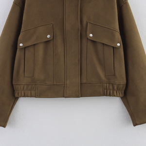 クロスボーダーの外国貿易の婦人服の秋冬の新型の欧米風のファッションの百合の美ラードの深いカレーの色のスタンドカラーのジャケットの女性